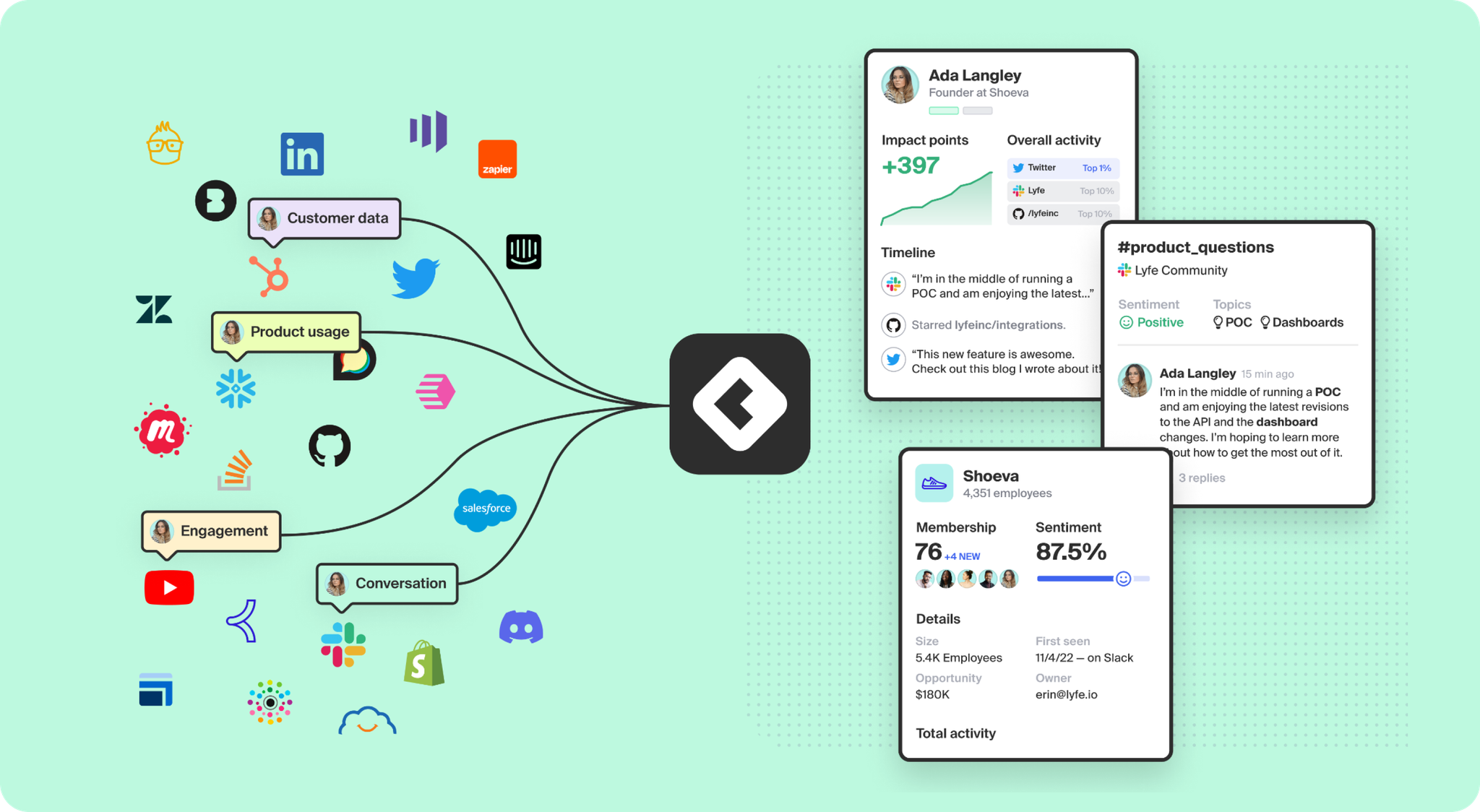 Let’s use an example to walk through some of our newest (and soon-to-be) features—in this hypothetical, let’s say you work at an open source company with an engaged group of contributors. With a community of developers active on GitHub, Slack, Twitter, and Stack Overflow, how do you: Support each individual’s customer journey? Address unanswered threads and posts? Identify which members are ready to engage with your company and convert to a paid customer? If you don’t have visibility into all of these sources and activities for each user, you’re missing out on valuable intent signals.