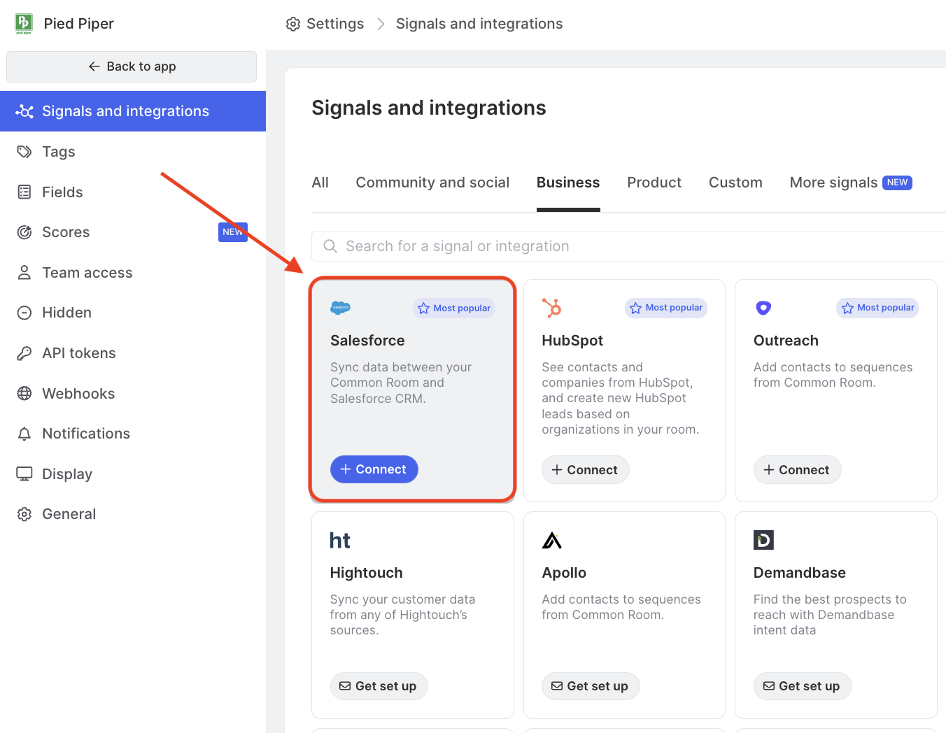 Once you have everything above ready, follow the guide below to connect Salesforce to Common Room.