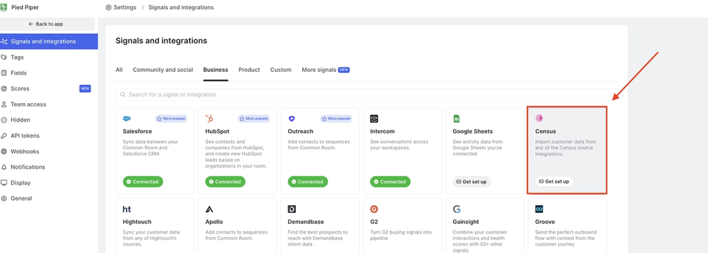 Currently, you will need to work with the Common Room team to configure your Census integration.