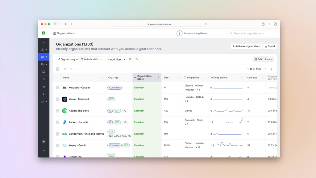 Common Room’s tags feature allows you to automatically label individuals and organizations with specific tags based on customizable criteria. This makes it easy to quickly filter for ideal personas, ideal customer profiles, and more.