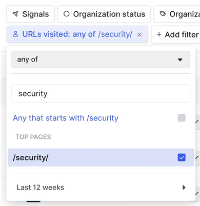 In this case, we want to know when people from target accounts that match our ideal customer profile visit our security page.