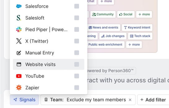 But connecting the dots between anonymous visits and actionable buying signals typically means tabbing between siloed tools—visitor identification systems, prospecting platforms, CRMs—to triangulate who to reach 😱