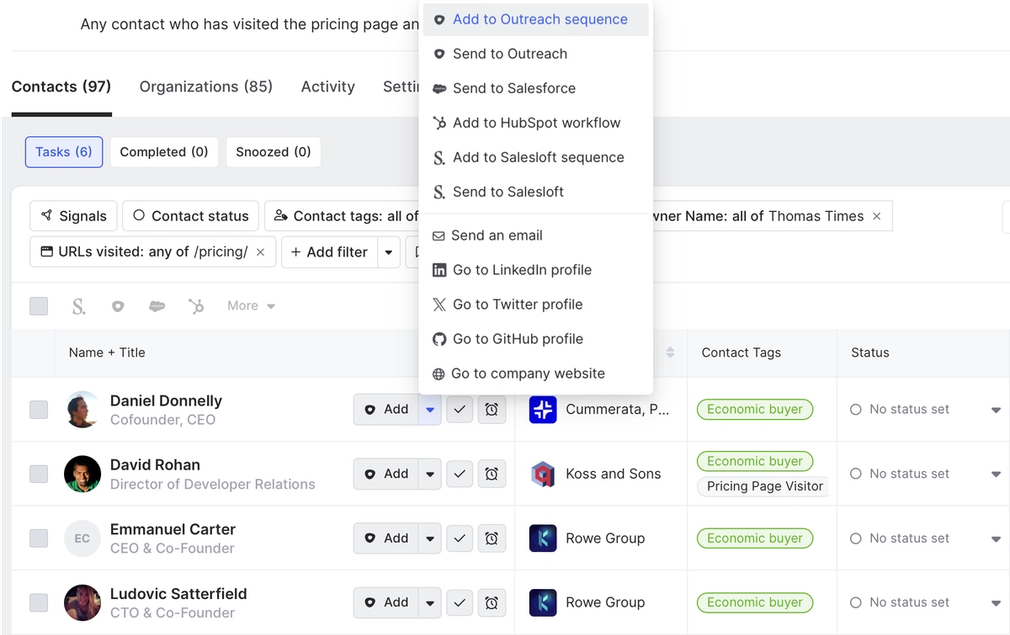 And presto—now any economic buyer associated with our book of business who visits our pricing page will automatically be added to this list. That includes both existing contacts and any future contacts.
