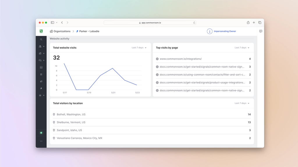 Common RoomThis is how we’ll track and deanonymize website visitors. Request a demo to follow along.