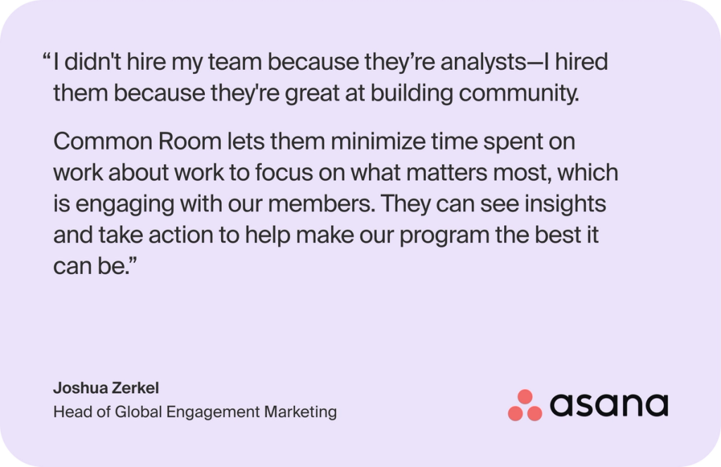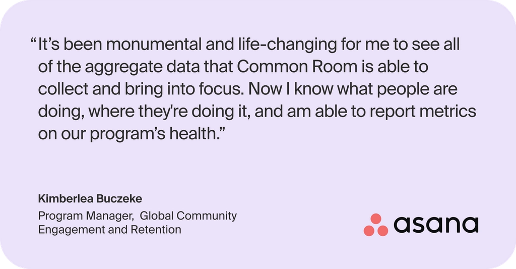 "Common Room empowers us to take action in a very direct way that clearly ladders up to the success of our business and, most importantly, the success of Asana’s customers."