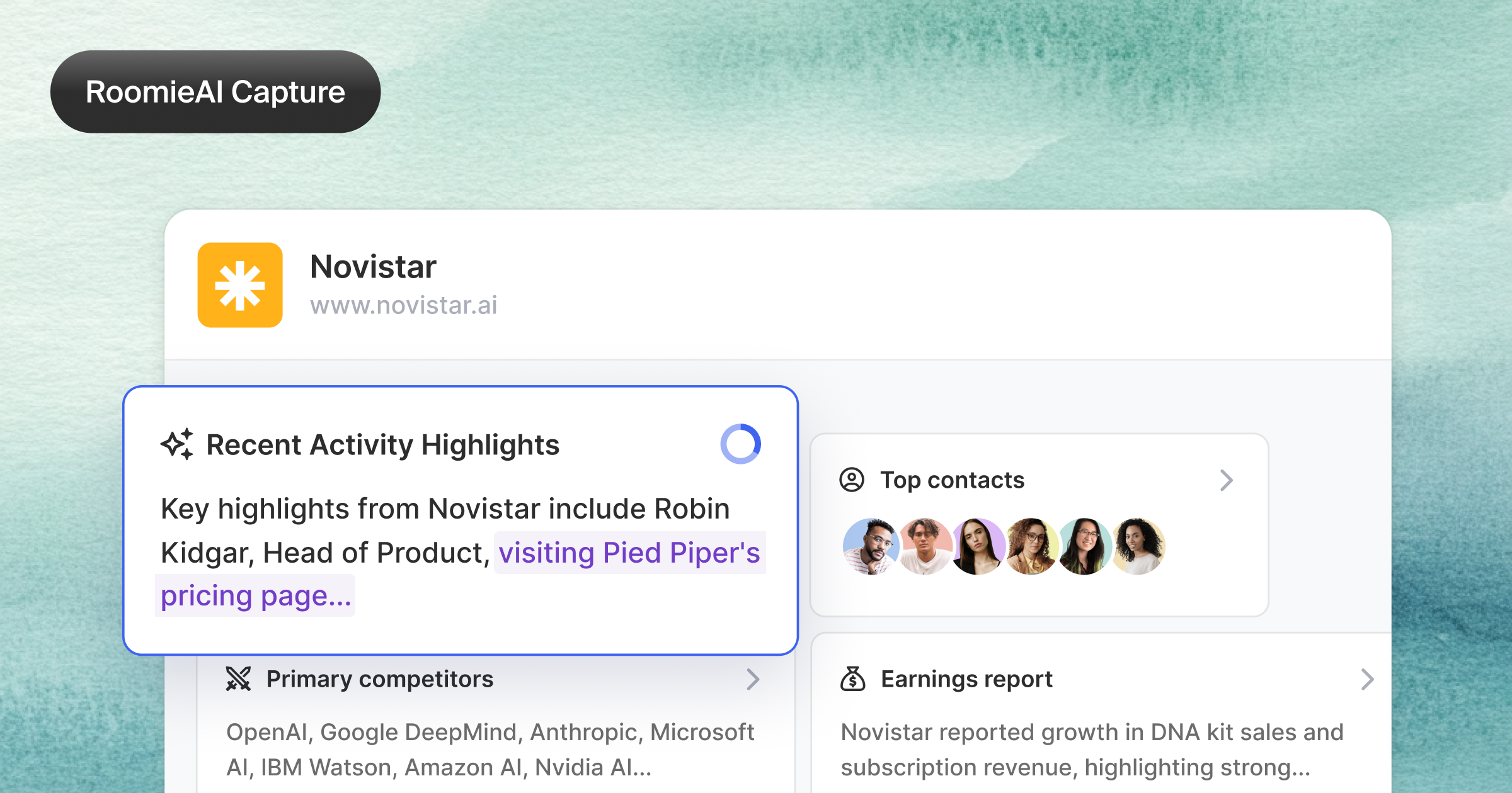 Our account research agent, RoomieAI Capture, builds on this by auto-surfacing business-specific, account-level insights from both your owned data and the public web based on your instructions.