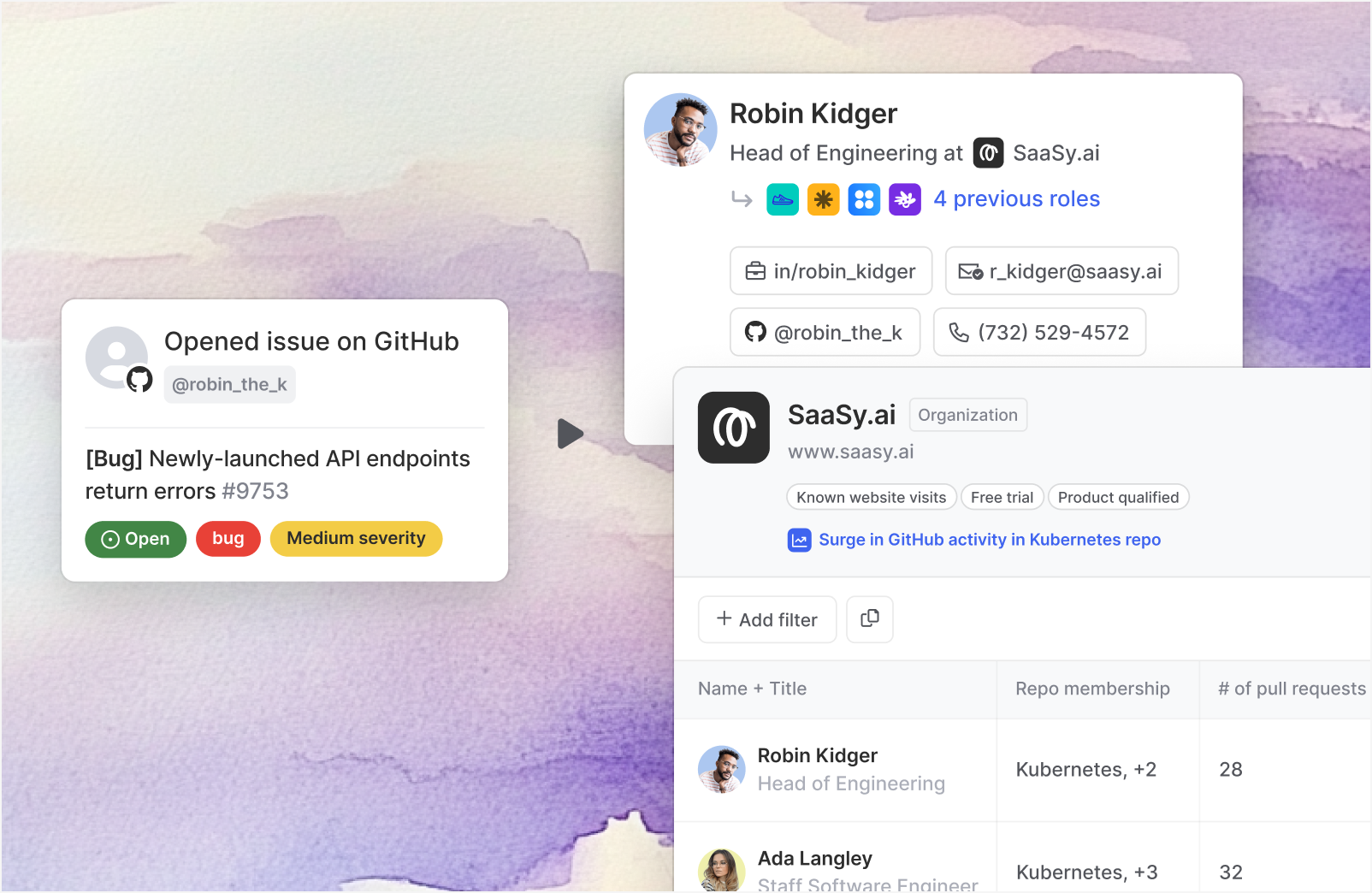 Instead of reaching out to the engineer who starred a GitHub repo or submitted a pull request, Mario wanted his GTM org to use those signals to triangulate intent and zero in on the people with budget authority.
