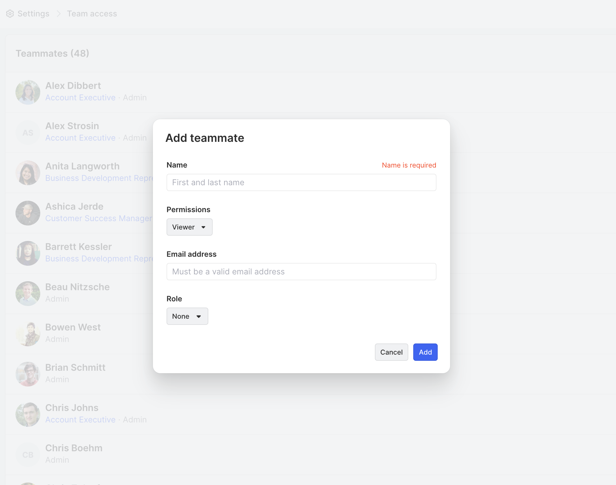 - After selecting the teammate's role, add their email address to finish inviting them to Common Room.