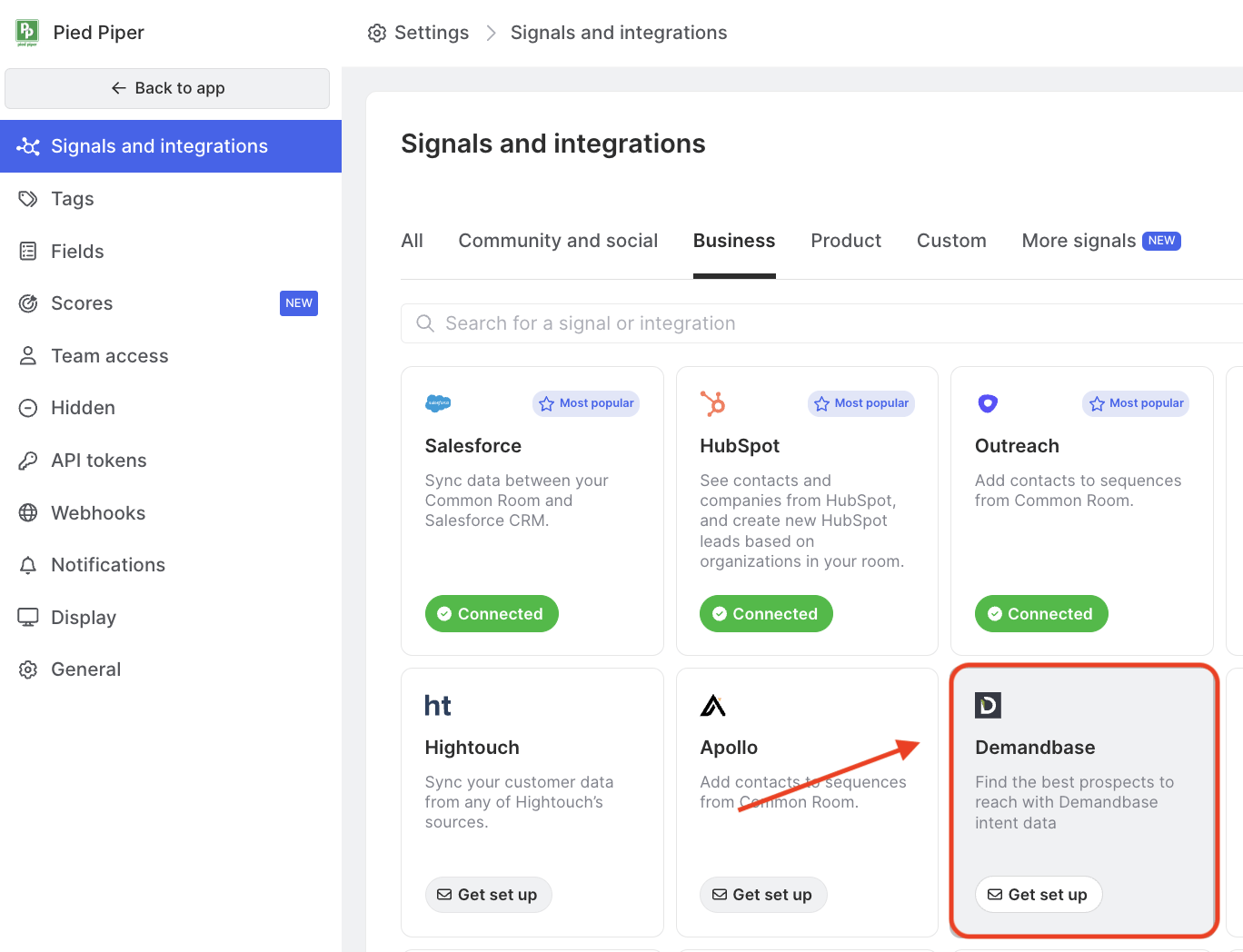 - Ensure that your Demandbase data is accessible via fields on your Salesforce objects (e.g. lead, contact, account, opportunity) or Hubspot (e.g. contact, company, deal)