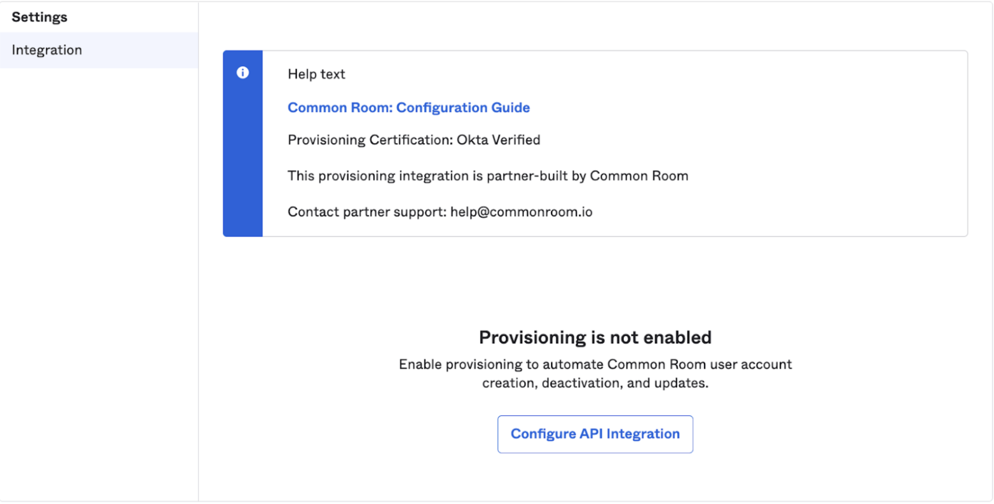 Once ‘SCIM provisioning’ is enabled on the General tab in Okta, navigate to the Provisioning tab.