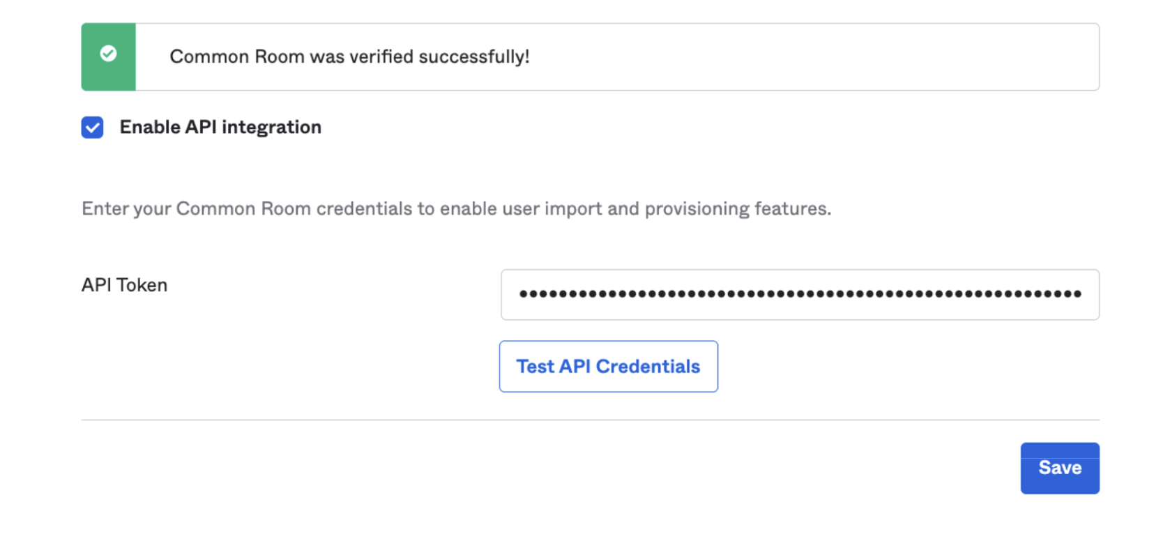 - Check the box to enable API integration, as shown below. In the section for the API token, paste the token that was generated in step 4.