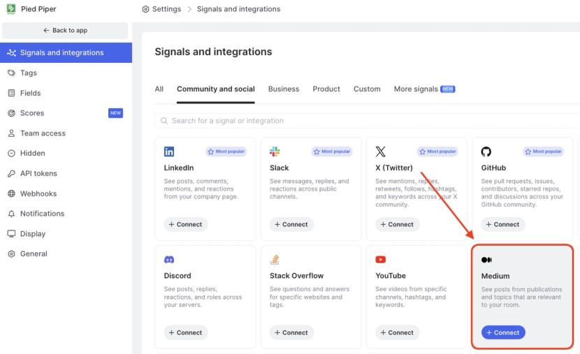 - Connect Medium: When you connect Medium, Common Room will surface posts from publications and topics that are relevant to your community.