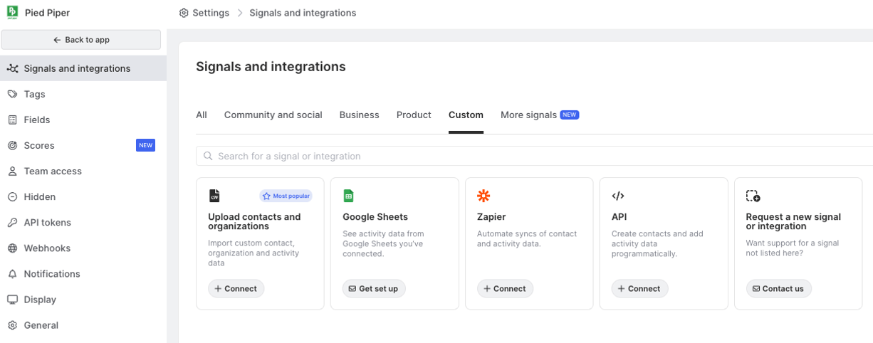 Common Room provides a suite of custom integration tools to ensure the platform is as extensible as possible. Use custom integration tools to bring in data from almost anywhere.