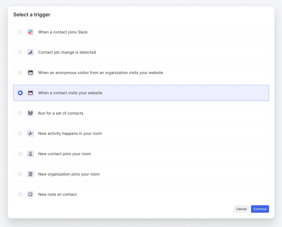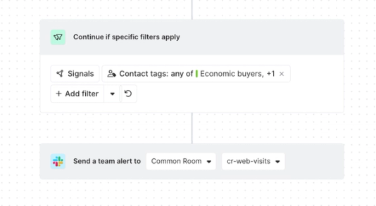 Keep your team updated of all important website visits using Common Room’s team alert feature in tandem with website visits. Website visits will be sent a Slack channel of your choosing for real-time or batched alerts.
