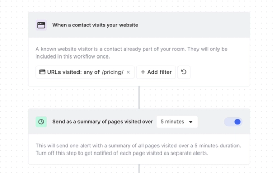 - Once you have made this selection you can input further criteria for whether a website visit should trigger an alert (e.g. you only want alerts when someone visits your pricing page).