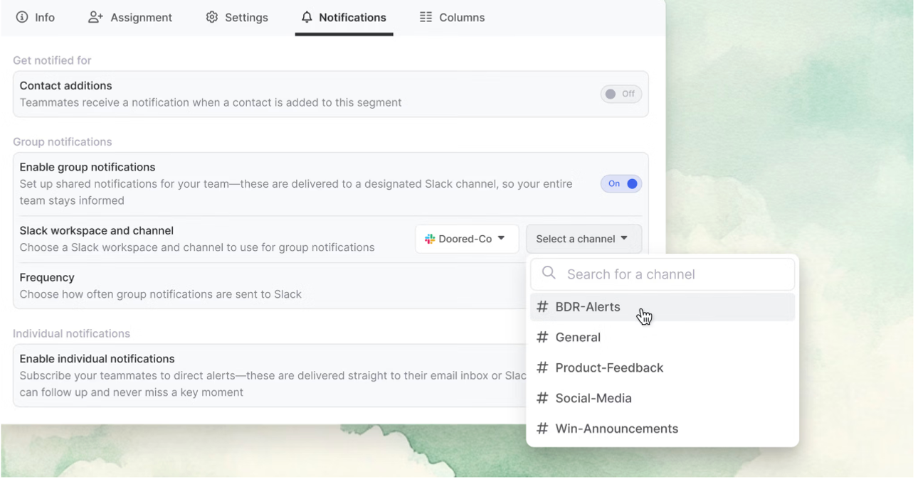 If you’re a rep and want to receive alerts for a specific segment, you can subscribe directly—no admin setup required.