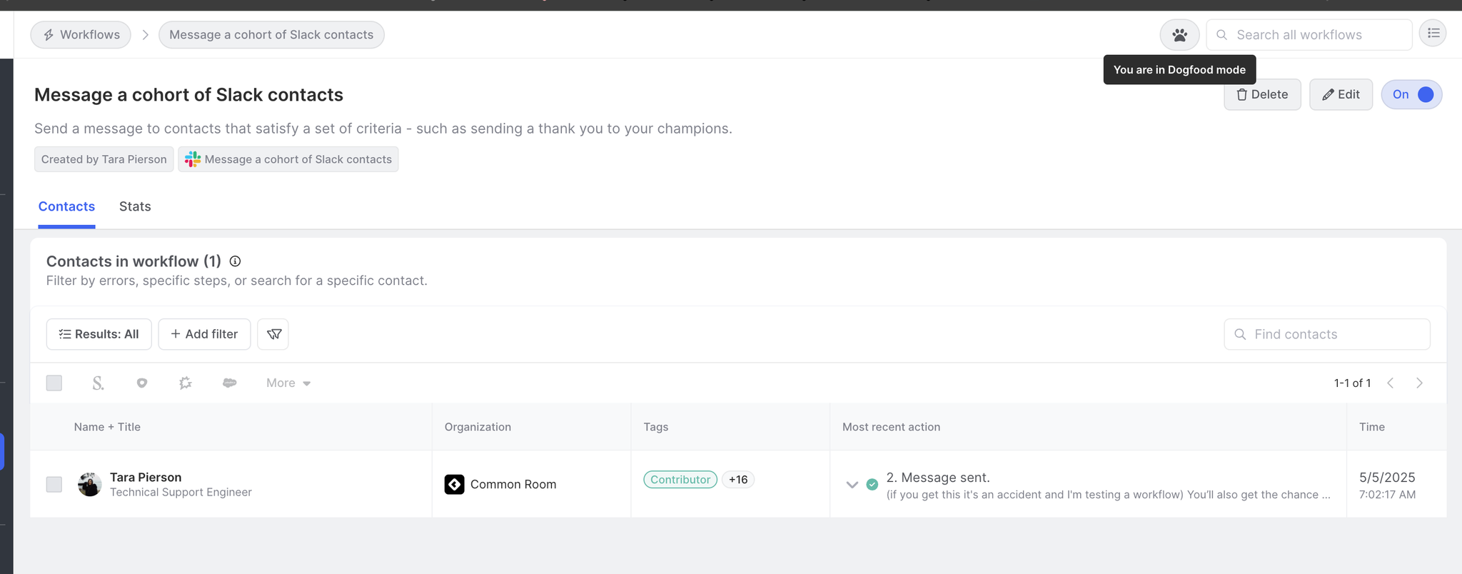 When a Contact joins slack | This trigger fires whenever a new Contact joins your Slack community and is typically used for community onboarding messages. |