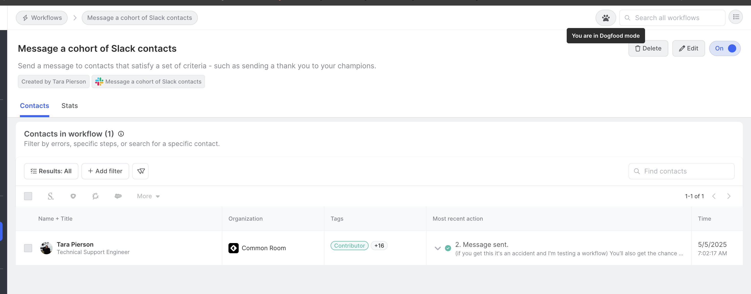 When a Contact joins slack | This trigger fires whenever a new Contact joins your Slack community and is typically used for community onboarding messages. |