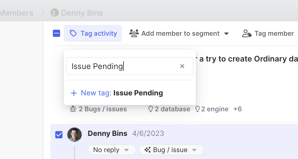 Let’s pretend we’ve verified this as a real issue that needs to be resolved. We can click on the activity and tag it as Issue Pending.