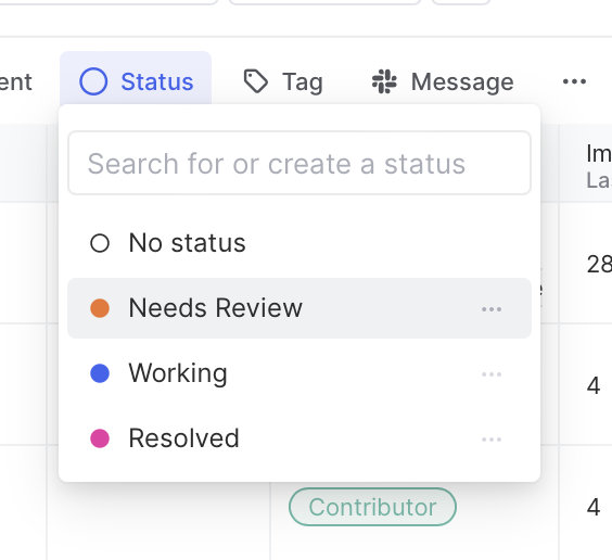 In this step, we’ll create a few statuses for group members to triage issues accordingly. We’ll click on + Add status and create three—Needs Review, Working, and Resolved.
