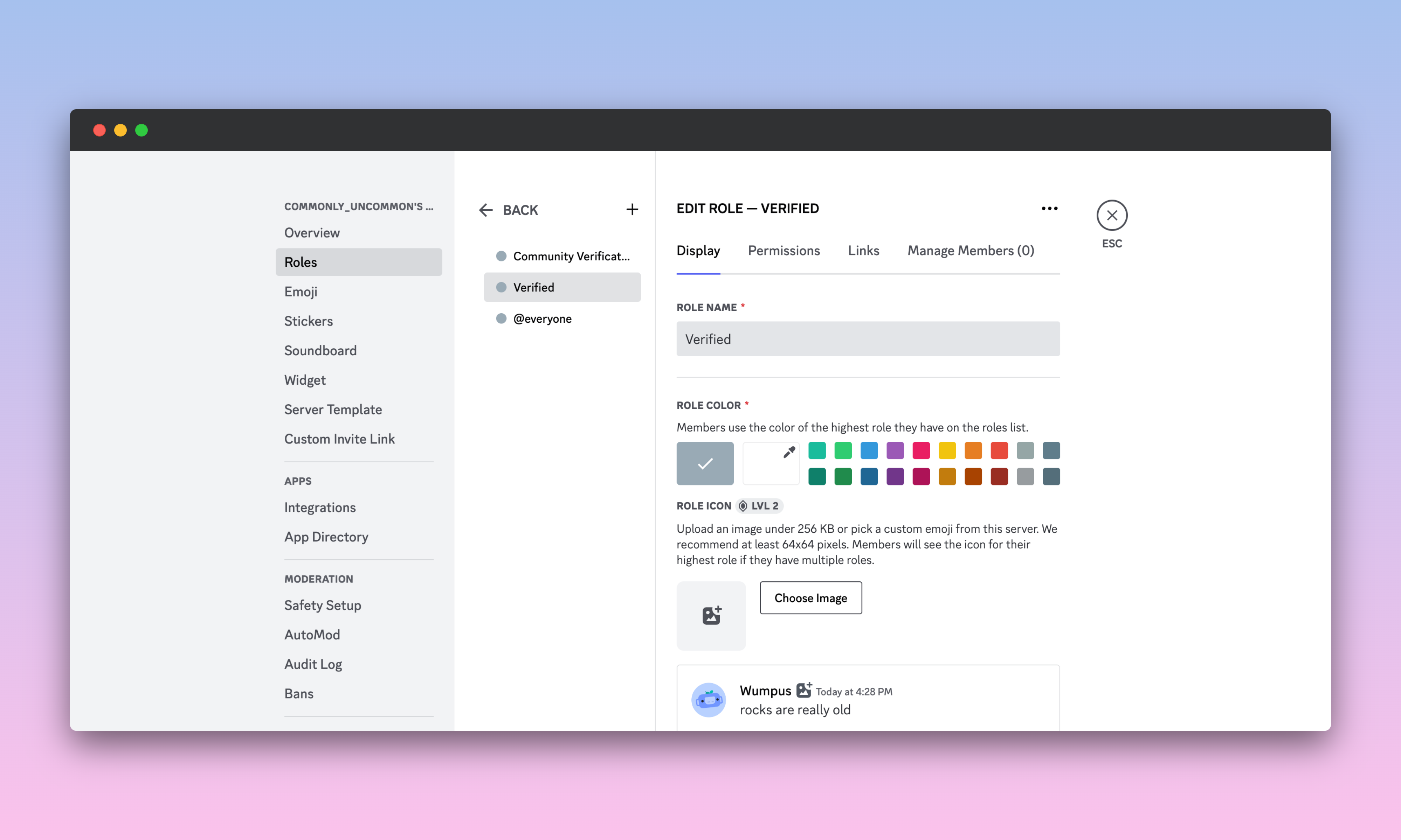 The Roomie role handles all messages in Discord that are created from Common Room workflows. This role is automatically created when you create and save a Common Room workflow that sends messages to Discord.