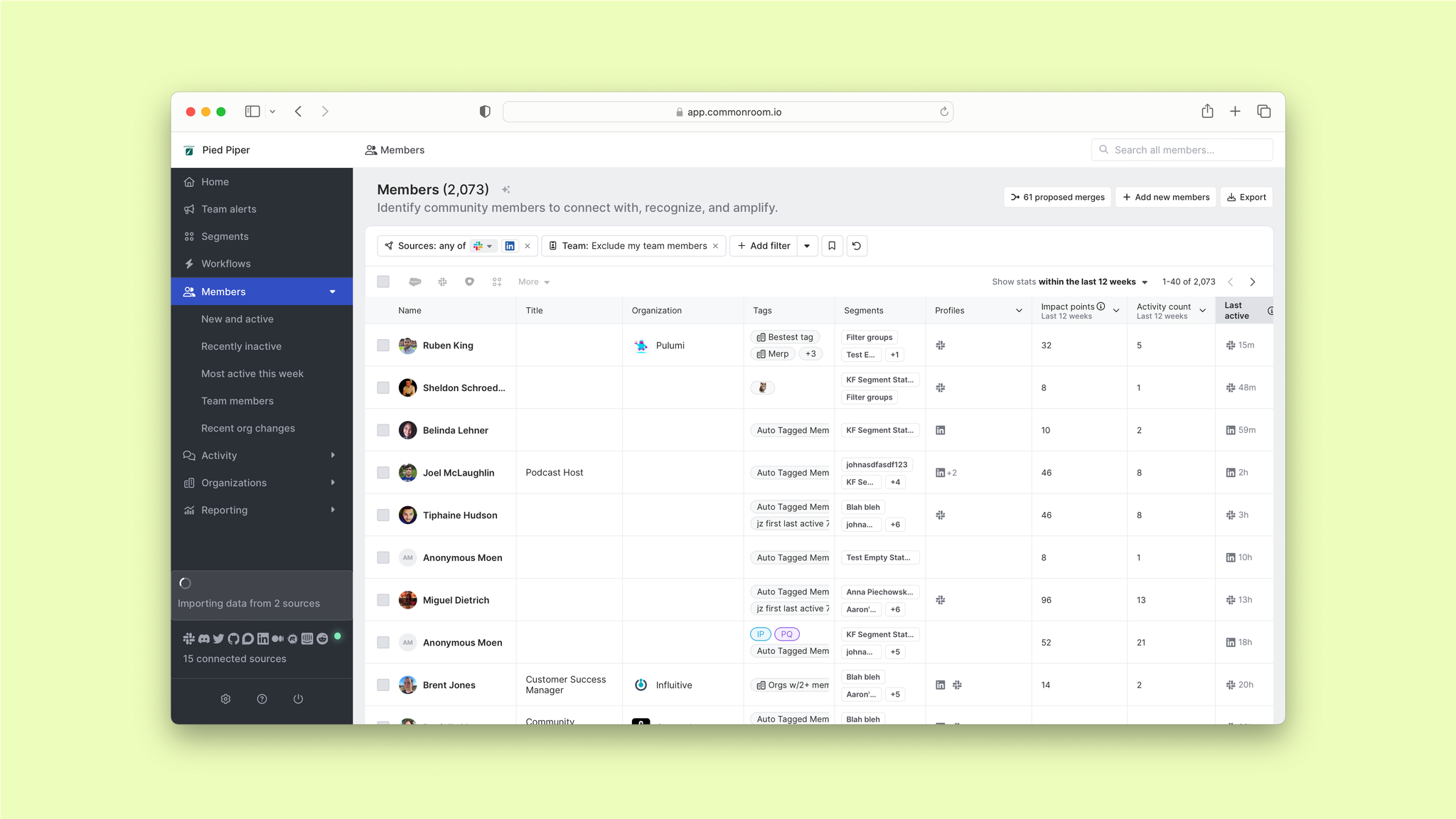 We’ll authenticate our account, set the connection, and bam—data from Slack is flowing into Common Room.
