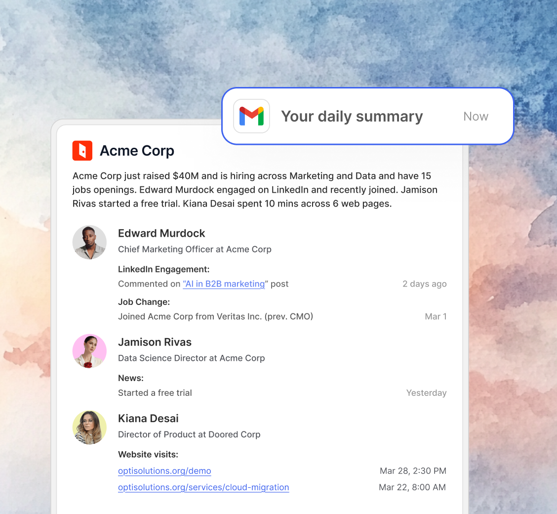 Complement structured plays and segments by adding AI-driven oversight. Surface accounts that may not be on a rep’s radar but are showing meaningful activity.