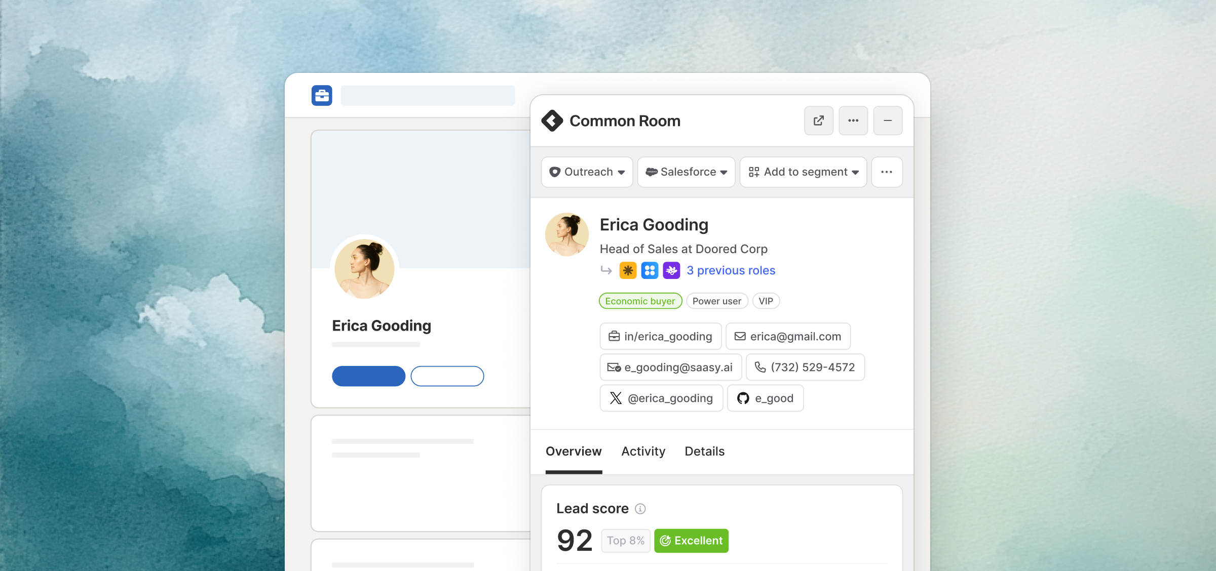 See signals, scores, and more for every person and company in your CRM or on LinkedIn, no tab hopping required.