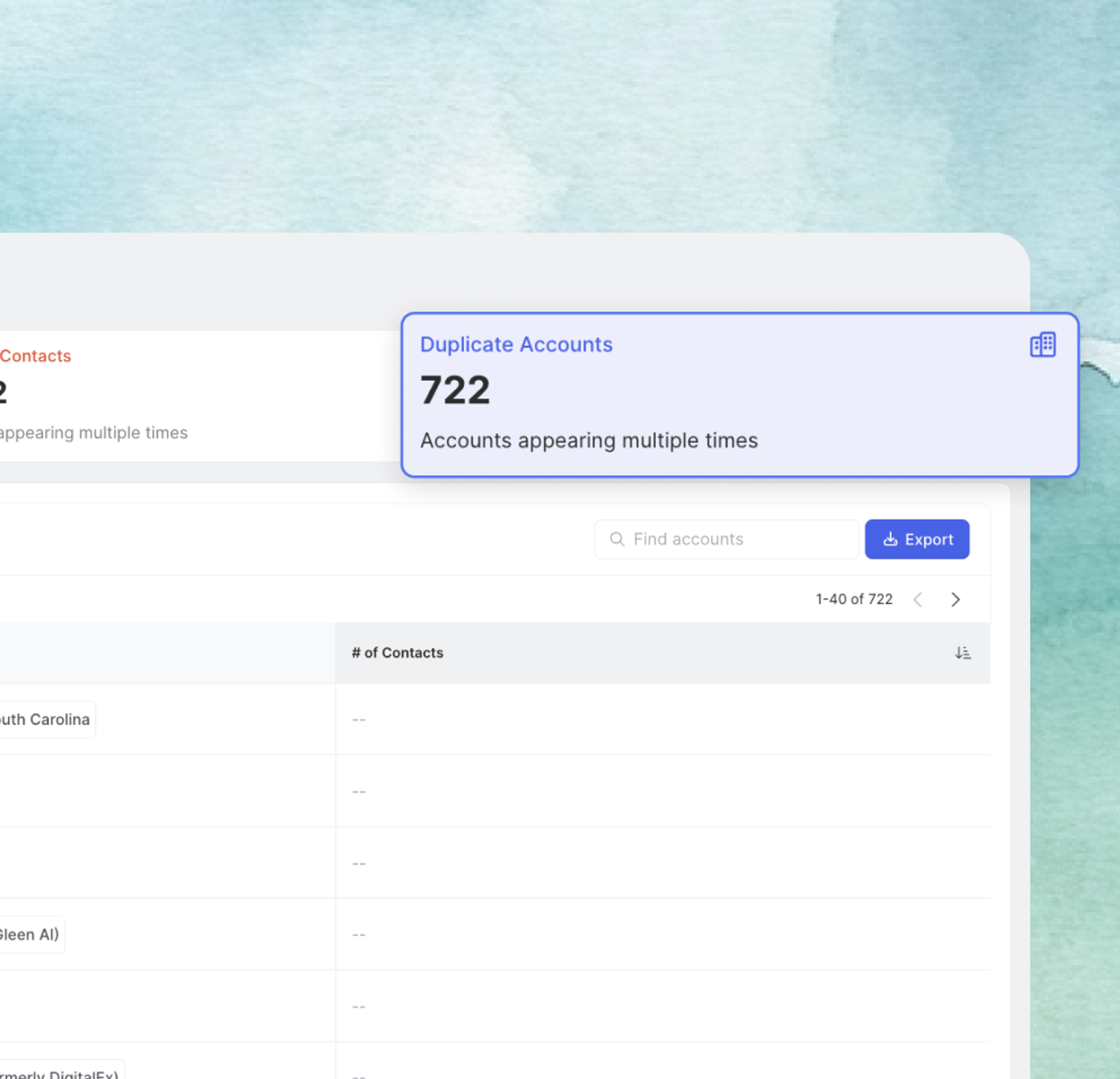 Understand where poor data quality is undermining the execution of your GTM team. Get transparency for three crucial data points: outdated contacts, duplicate contacts, and duplicate accounts.