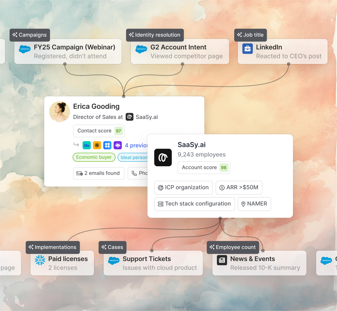 Turn scattered data into revenue with AI that connects all customer signals into actionable intelligence that scales across your entire sales organization.
