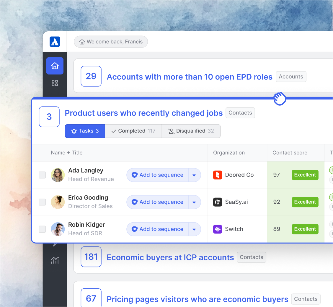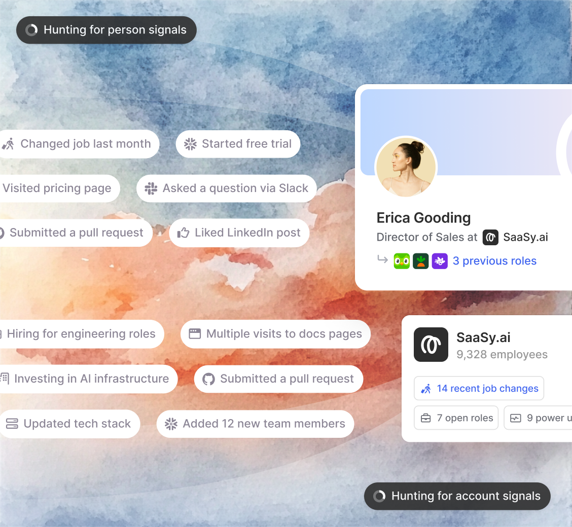 Layer on signals like job changes, web visits, social engagement, and hundreds more to paint a full picture of user intent.