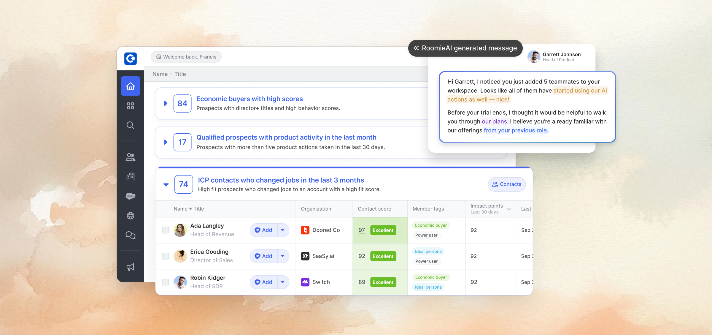 Agentic workflows spot account level buying signals and auto-prospect leads most likely to convert.