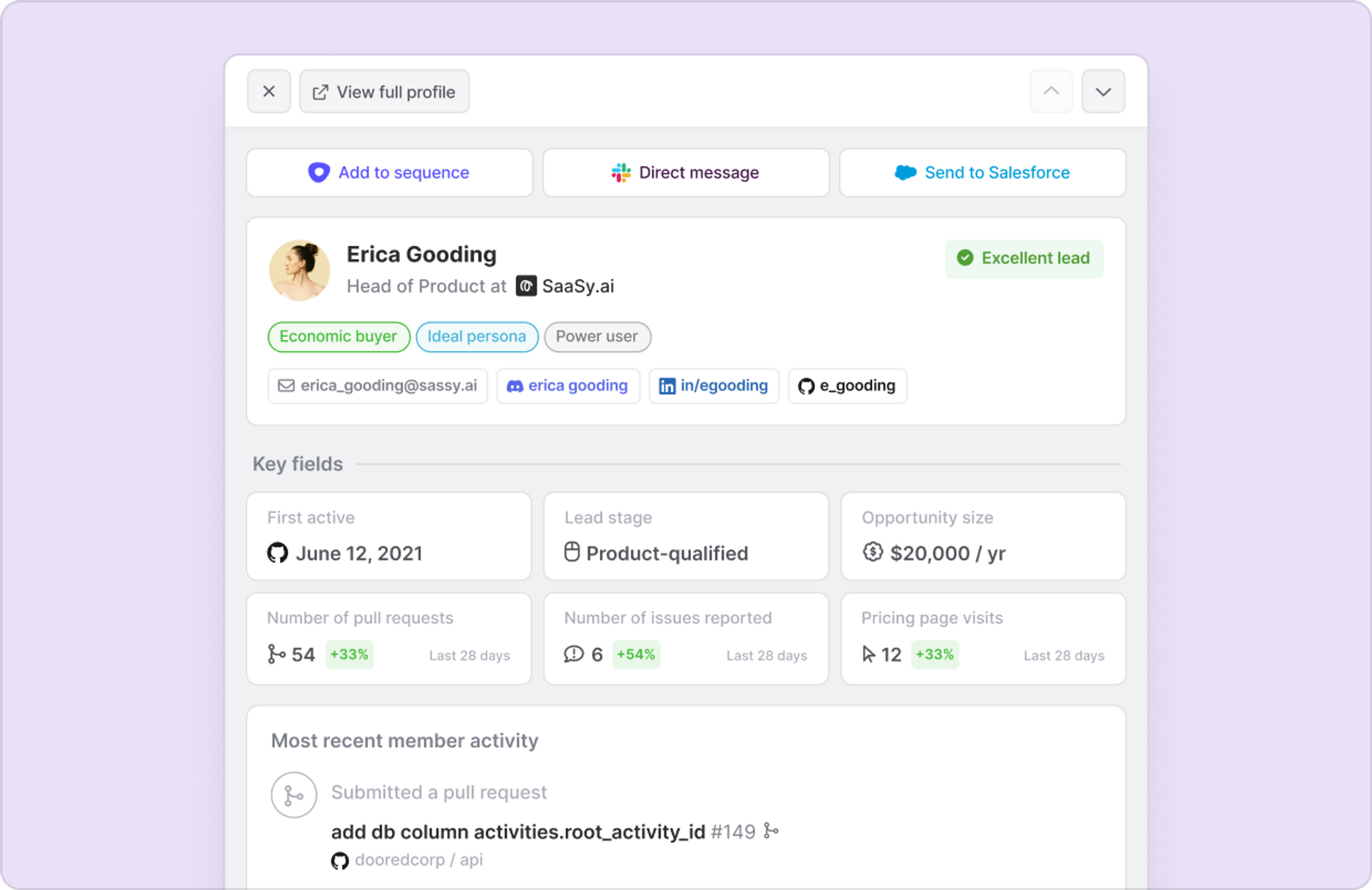 Uncover who’s actively engaging with your repos and other open-source projects to focus outbound on prospects already showing intent.